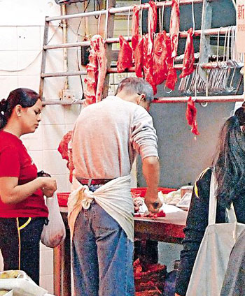 該報踢爆不良牛肉檔“蠱惑”招數后,記者24日到街市巡查,發現不少平時掛滿問題牛肉的肉檔,都將“不能見光”牛肉收起暫避風頭,其中位于馬鞍山、被揭發有問題的肉檔,架上只掛上寥寥可數的牛肉售賣。