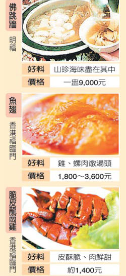 其中福臨門就是眾所公認(rèn)的富豪飯?zhí),脆皮雞、燕窩、魚翅與荷葉糯米飯,在質(zhì)量與口碑上都是一等一,價(jià)格也成正比,以套餐為例,一客魚翅、25頭吉品鮑、龍蝦、乳鴿、炒飯加燕窩要港幣2500元。此外鮑魚大王楊貫一的富臨飯店、四季酒店中米其林三星的龍景軒也都算得上是富豪飯?zhí)谩?/p>