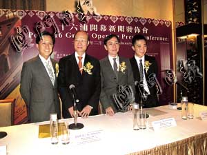 何鴻燊致開幕辭表示,為貫徹履行澳博對社會的承諾,澳博配合特區(qū)政府舊區(qū)重整計劃,選址內(nèi)港發(fā)展“十六浦”,相信可吸引更多居民和旅客聚集內(nèi)港,進而惠及該區(qū)的原居民和商戶。