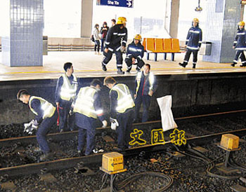 消防人員在冒煙列車開走后繼續檢查。(圖片來源:文匯報)