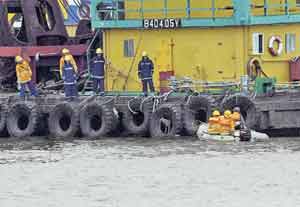 捉狗隊(duì)員見(jiàn)事敗,即向消防處求助,大批消防員趕到場(chǎng),而愛(ài)護(hù)動(dòng)物協(xié)會(huì)亦有派員趕到。由于跳海逃走的唐狗游出離岸300多公尺遠(yuǎn)的躉船,消防安排船只到場(chǎng)接載捉狗隊(duì)出海,再轉(zhuǎn)乘橡皮艇接近躉船船身,擾攘個(gè)多小時(shí),雖然唐狗曾再度跳海,但被捉狗隊(duì)員的捉狗索套緊頸項(xiàng)就逮,之后將其納入狗籠,乘船上岸,帶返九龍動(dòng)物管理中心接受檢驗(yàn)。