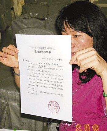 中新網(wǎng)4月10日電 據(jù)香港文匯報(bào)報(bào)道,再有港商因涉重婚罪被香港大老婆告上法庭。港婦吳新菊9日手持法院受理通知書接受香港媒體訪問,稱不滿老公黃×躍在深圳包二奶,并利用假身份證在海南與二奶結(jié)婚生仔,已向海南三亞地方法院控告老公犯“重婚”和使用假身份證。
