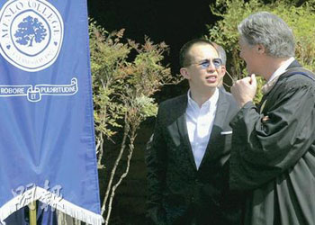 曾在Menlo高中就讀的李澤楷,11日應(yīng)南灣Menlo College邀請,擔(dān)任畢業(yè)禮的主講嘉賓。典禮結(jié)束后,他回答了幾個(gè)提問。戴著太陽眼鏡的他說,只會(huì)在美國逗留數(shù)天處理業(yè)務(wù),畢業(yè)禮后數(shù)小時(shí)便要飛往洛杉磯。至于有關(guān)其感情事,如是否已與梁洛施訂婚?李澤楷一概不回應(yīng),就連記者問他是否有意發(fā)展娛樂事業(yè)時(shí),李澤楷也只是笑笑說:“我不會(huì)答你的。”