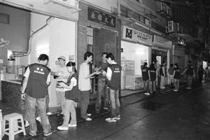 其余探員則進入場內,截查可疑男女的身份數據,借此預防各類涉及賭場罪案,期間帶走逾40名男女返警署作進一步調查,預期類似的行動將持續及不定期進行。