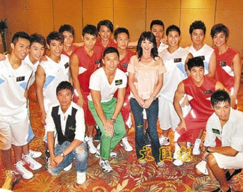資料圖:五月八日,由香港無線電視舉辦的“2008香港先生選舉”活動展開宣傳攻勢,歷屆的"香港先生"與一眾年輕貌美的女藝員登臺公布詳情。“香港先生”選舉將在八月二日舉行。 中新社發 洪少葵 攝
