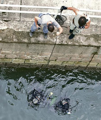 至7日下午2時許,探員將疑兇蒙頭押到觀塘碼頭重組案情,由他指出丟尸位置,警方出動約20名飛虎隊“水鬼”下海打撈尸體,至下午5時仍無獲,暫時收隊,8日繼續搜尋。