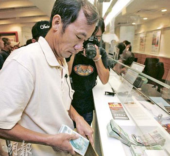 中新網9月25日電,據香港《明報》報道,近日一個又一個的手機短訊,謠傳香港東亞銀行出現財困,終令這家香港第五大銀行遭遇歷來第一次擠提,存戶排隊提款的人龍至25日凌晨仍未散去。