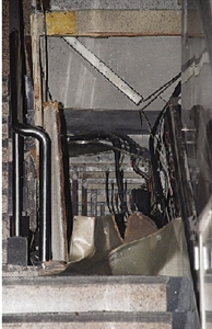 澳門金來大廈梯間電箱的不銹鋼門被炸飛。(圖片來源:澳門日報)