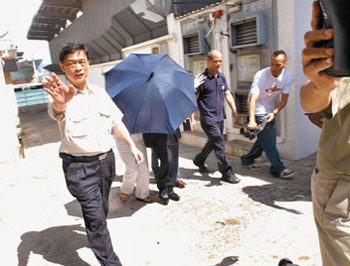林世榮不幸猝逝,其妻及家人到殮房認尸后傷心離開。(圖片來源:文匯報)