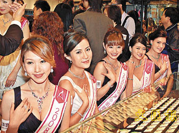 中新網11月28日電 據香港《文匯報》報道,20位候選亞洲小姐佳麗,27日清一色穿上Deep-V連身裙亮相,到珠寶贊助商門市試戴首飾。