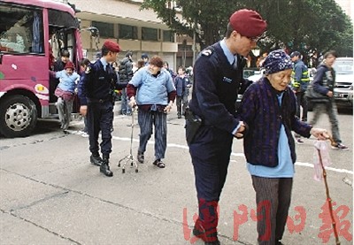 有人報警求助,多名警員到場調查。由于旅游巴上的14名長者行動不便,要在安老院人員和警員攙扶到另一大巴,有長者更需乘坐輪椅。