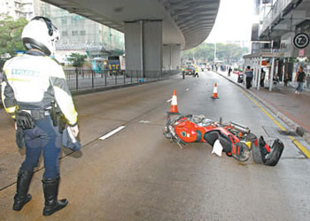 肇事電單車沖前約40米才停下,鐵騎士也受重傷。