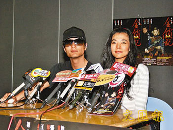 尹子維在舞臺劇女主角焦媛陪同下出席記者會交代被襲經過。(圖片來源:文匯報)
