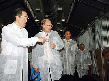 三月四日下午,香港署理行政長官唐英年(右二)與多名局長、警務處長,連同北京奧組委官員參觀由沙田香港體育學院改建而成的奧運及殘奧馬術主要比賽場地和相關配套工程。 中新社發 譚達明 攝