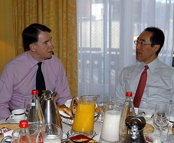 唐英年與歐盟貿(mào)易專員曼德爾森共晉早餐時(shí)強(qiáng)調(diào),香港繼續(xù)努力推動(dòng)多邊貿(mào)易自由化,并期望香港與歐盟不斷加強(qiáng)雙邊經(jīng)濟(jì)聯(lián)系。他與比利時(shí)官員會(huì)面時(shí),介紹了香港的最新發(fā)展,雙方均期望兩地貿(mào)易、投資、文化和教育有更多的交流和合作。