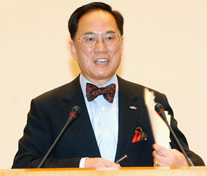 六月十日,香港特區行政長官曾蔭權、政制及內地事務局局長林瑞麟、行政長官辦公室主任陳德霖、八位新獲委任的副局長及九位政治助理下午一起會見新聞界。 中新社發 譚達明 攝