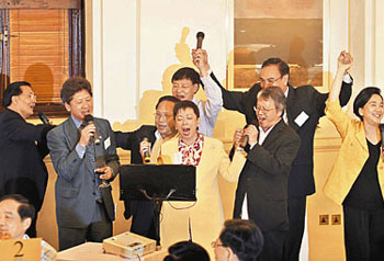 一眾議員高歌一曲《朋友》,大家流露依依不舍之情。(圖片來源:文匯報)