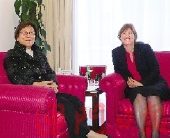 阿黛爾•布賴恩特4日上午11時半到訪澳門立法會,主席曹其真接見,雙方會面近一個小時。布賴恩特會后表示,會面期間傾談到立法會的運作,了解到澳門將舉行兩個重要選舉,政界和社會各界將度過忙碌的一年,另外,也談及曹其真的未來路向。