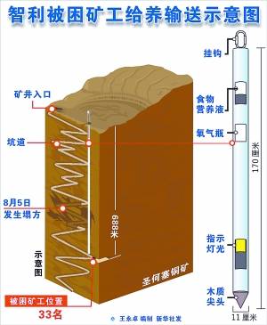 智利圣何塞銅礦本月5日發生塌方,救援人員22日發現33名被困礦工的位置,在此之前他們依靠少量食物頑強堅持了17天。智利政府目前正全力展開救援工作,然而,技術上的困難導致可能要花4個月時間才能救出全部礦工。當局絞盡腦汁激勵他們的求生意志,運送抗抑郁藥物、娛樂設施等供其打發時間,還指導他們挖廁所預防疾病、鍛煉身體便于以后逃生等。