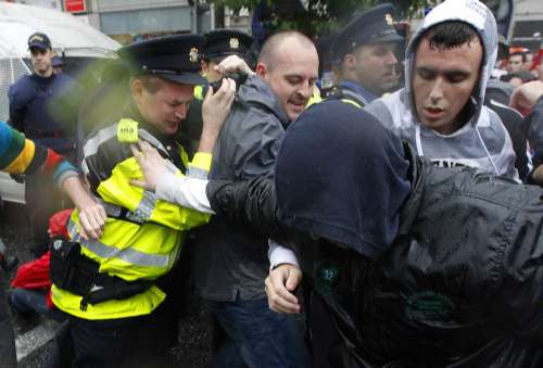 示威者包括反戰人士,他們不滿英國對北愛爾蘭的控制,以及布萊爾決定參與伊拉克戰爭。為了避免騷亂,都柏林市中心一些商店關門。警察封閉了鄰近幾條街道。
