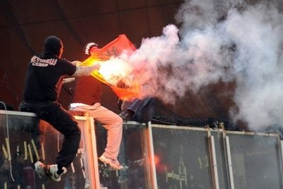 意大利與塞爾維亞足球隊原定于12日舉行2012年歐洲杯資格賽,由于暴力事件被迫取消。在比賽前、過程中與結束后,一些塞爾維亞球迷將攻擊目標不僅對準意大利球迷與當地警察,還對準了塞爾維亞球隊的守門員。
