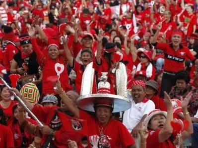 2006年9月19日,泰國發(fā)生政變,總理他信領導的政府被推翻。從今年3月起,“紅衫軍”在曼谷舉行長達兩個月的示威集會,并數(shù)次與軍隊發(fā)生沖突,造成近90人死亡,至少1900人受傷。5月19日集會結(jié)束后,納塔武等“紅衫軍”主要領導人前往警局自首并被扣押至今。(記者 朱麗)