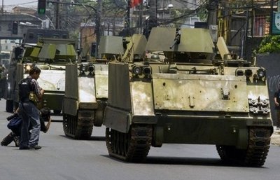 最少10輛配備點50口徑機關槍的“M113”裝甲車,隆隆駛過里約熱內(nèi)盧市中心街頭,長驅直進開往該市北面的克魯賽羅貧民窟。當局從來未試過出動這種重裝備對付毒販,今次十足打仗一樣,許多居民都嚇了一跳。