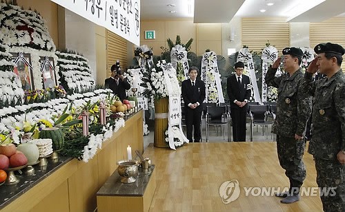 據(jù)報道,葬禮在韓國城南市一家軍隊醫(yī)院內(nèi)舉行,有數(shù)百人參加。其中包括政府高級官員、軍隊官員、政要、宗教領(lǐng)袖以及“反朝”積極分子。此外,一些對炮擊事件表示憤怒的韓國平民也到場悼念。