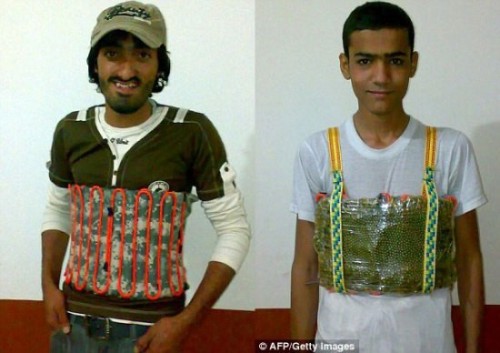 這兩名男子據(jù)信是哈桑·喀什和塞夫·拉赫曼·查巴哈里,他們是遜尼派穆斯林武裝分子組織“真主旅”成員。其中一人在試圖引爆自殺式炸彈背心之前被逮捕,另有一人因與襲擊事件有關(guān)也遭到逮捕。在另一張照片中,喀什和查巴哈里在鏡頭前揮舞槍支,自殺式炸彈背心放在他們面前。