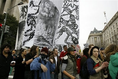 華盛頓的示威者打算“封鎖”國家稅務局,另一些示威者則會設法阻止K街的“發戰爭財者”。K街是華盛頓公司游說者的大本營。