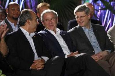 在舉行多邊會(huì)談之前,布什在21日分別與卡爾德龍和哈珀舉行了雙邊會(huì)談,強(qiáng)調(diào)美國與墨西哥和加拿大關(guān)系的重要性。