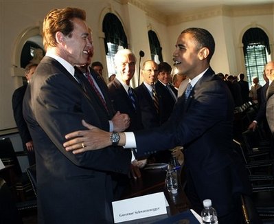 奧巴馬與加利福尼亞州州長共和黨人施瓦辛格會面