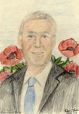 參賽作品中有一幅畫讓評委們印象深刻,這幅畫出自紐約10歲女孩卡特麗娜·薩德弗之手,她畫的是紅色背景下的總統(tǒng)布什。大紅色背景使得整幅畫讓人眼前一亮。
