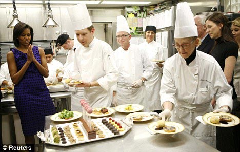 據(jù)悉晚宴開始前,“第一夫人”米歇爾為了表示對(duì)來賓的尊重,親自前往廚房查看晚宴的籌備情況。