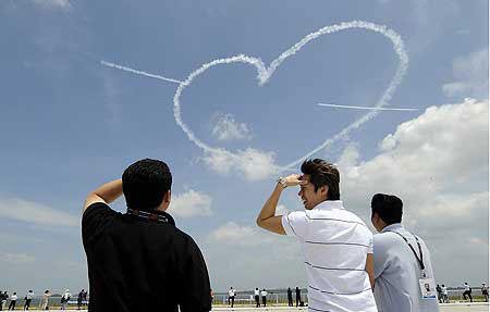 "天邊一顆心":特技飛行隊新加坡航展精彩亮相(圖)