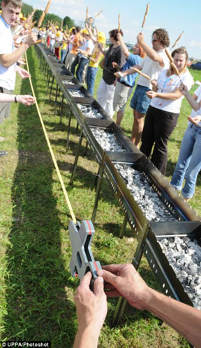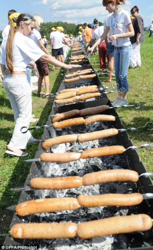 日前,志愿者們在俄羅斯首都莫斯科集體烤肉,創(chuàng)造了世界上最長的燒烤攤的紀(jì)錄。
