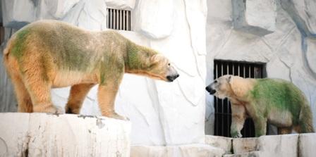日本東山動植物公園的綠色北極熊,讓游客議論紛紛。