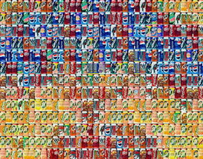 該幅作品中,他使用了10萬6千個易拉罐,這一數目正好是美國每30秒內使用的易拉罐數量。