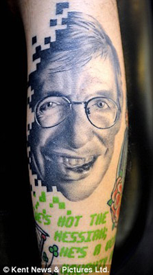 英國小伙杰克·牛頓由于對科學,特別是天體物理學熱愛到難以自拔的程度,日前他將著名科學家史蒂芬·霍金的頭像紋在了腿上。