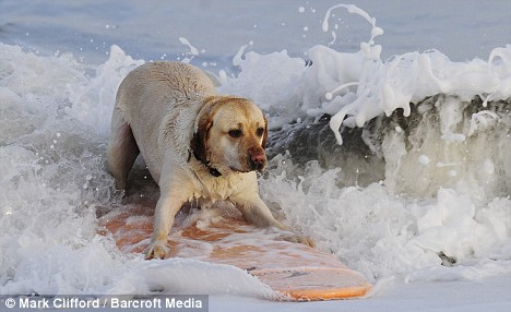 這只三歲的拉布拉多犬能夠駕著沖浪板在海浪中保持身體平衡,這對一只狗來說很難做到。小狗的主人是一對父子,他們也是沖浪愛好者。據父親介紹說,這只狗從生下來就開始和他們一起下水玩耍了。