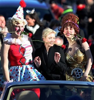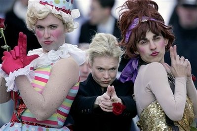 中新網2月6日電 據美聯社報道,5日哈佛大學的速食布丁劇團將速食布丁年度女性大獎授予女星蕾妮•齊薇格。蕾妮•齊薇格按照以往慣例,帶領一群男扮女裝的學生們在哈佛校園中進行一場盛大游行。