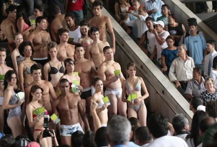 中新網2月18日電 據巴西媒體報道,17日是巴西的內衣節,巴西首都巴西利亞的一座公共汽車站,一群身穿性感內衣的模特招搖過市,吸引大批路人注目。