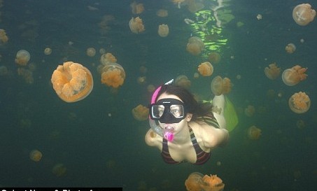 據英國媒體報道,來自美國波士頓的的計算機科學家弗拉德日前在世界上絕無僅有的無毒水母湖拍攝了自己女兒和水母嬉戲的圖片。他形容在帕勞水母湖里游泳如同置身于果凍中,“我們越往湖中游,就有越多的水母將我們包圍,看著云集的水母,真是令人愉快。”