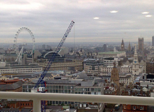今年40歲的德里克-伯登(Derek Burden)在倫敦西區的科芬園的16層高樓處發現令人驚異的UFO景象,拍攝時間是早上8點30分。但是伯登只用手機拍攝了一張照片,這件事發生在幾天前,當時他的妻子莎拉注意到厚云層的太空中隱約出現了幾個特殊形狀的飛行物,伯登說:“當時我正在等即將送來的一些材料,我便忙中偷閑去陽臺喝杯茶,依據妻子所描述的不明飛行物,我在16層樓拍攝起來十分方便。”他還指出,這4個UFO釋放的光線并不是任何典型的光線折射,并證實在拍攝時身旁并沒有任何特定光源進行偽造拍攝。