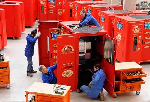 中新網3月27日電 據新加坡《聯合早報》報道,意大利一名企業家發明了比薩自動販賣機,人們只需付區區4.5美元,就能在3分鐘內吃到熱騰騰的新鮮意大利比薩。