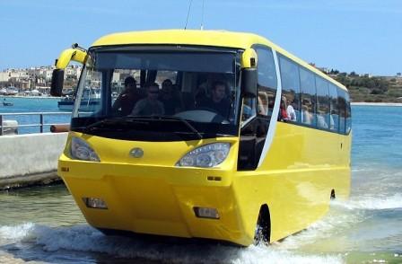 該種擁有50個座位的巴士與普通巴士一樣能以時速70英里在陸上行駛。當(dāng)遇到水路時,只需輕按開關(guān),巴士的輪子就會縮進車身,空氣活門便會推動巴士,巴士便能在水中航行,并且淡水和海水均適用。不過這種巴士并不便宜,一輛售價就要28萬英鎊。