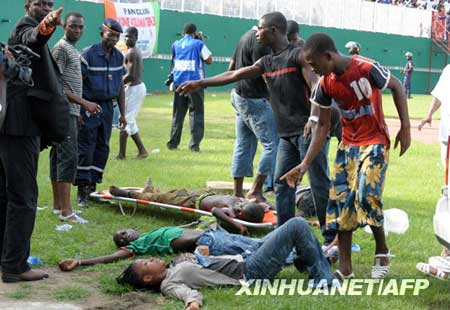 這場(chǎng)比賽是在阿比讓的烏弗埃-博瓦尼體育場(chǎng)進(jìn)行的,共有近5萬(wàn)名觀眾在現(xiàn)場(chǎng)觀看了比賽。有消息說(shuō),引發(fā)這一意外事件的原因是體育場(chǎng)的一面墻突然坍塌,致使附近的觀眾在恐慌中奪路逃離現(xiàn)場(chǎng)時(shí)發(fā)生了踩踏事件。據(jù)介紹,目前這個(gè)體育場(chǎng)的周邊已經(jīng)恢復(fù)了平靜。