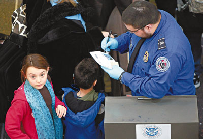 華盛頓機場,兒童排隊通過安全檢驗。