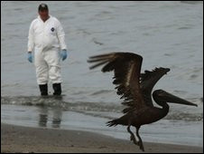 墨西哥灣海岸一只被漏油污染的鵜鶘