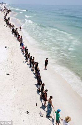 中新網(wǎng)6月27日電 綜合外媒報(bào)道,美國(guó)數(shù)百名群眾日前在佛羅里達(dá)州海岸手拉手排成“人鏈”,抗議英國(guó)石油公司經(jīng)營(yíng)的墨西哥灣油井泄漏事件。